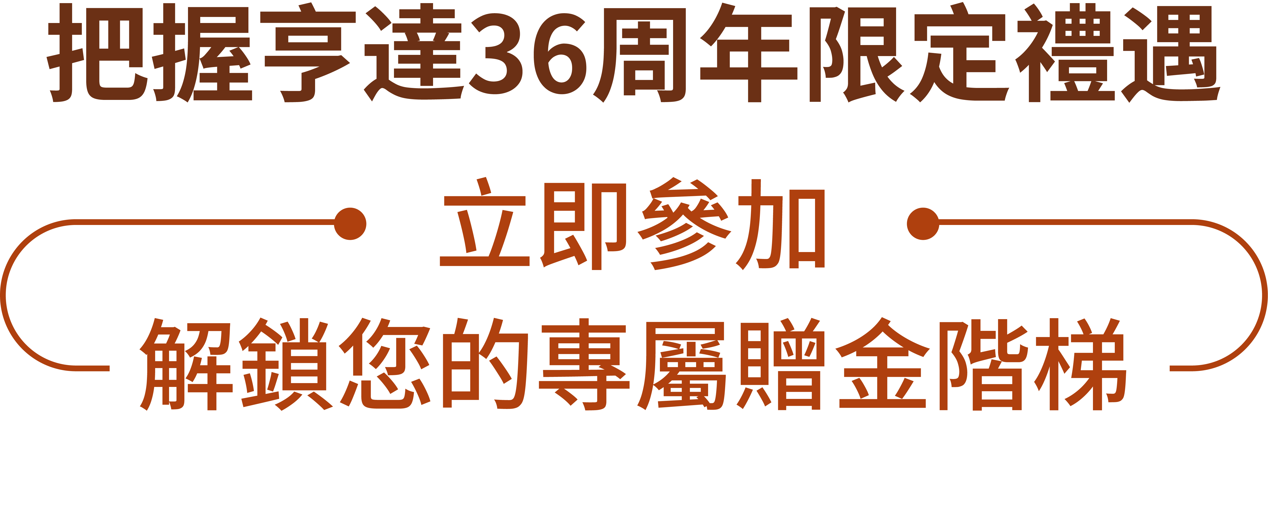 層層進階,步步加碼,讓每一次交易更具價值,與亨達共赴36載榮耀之路。